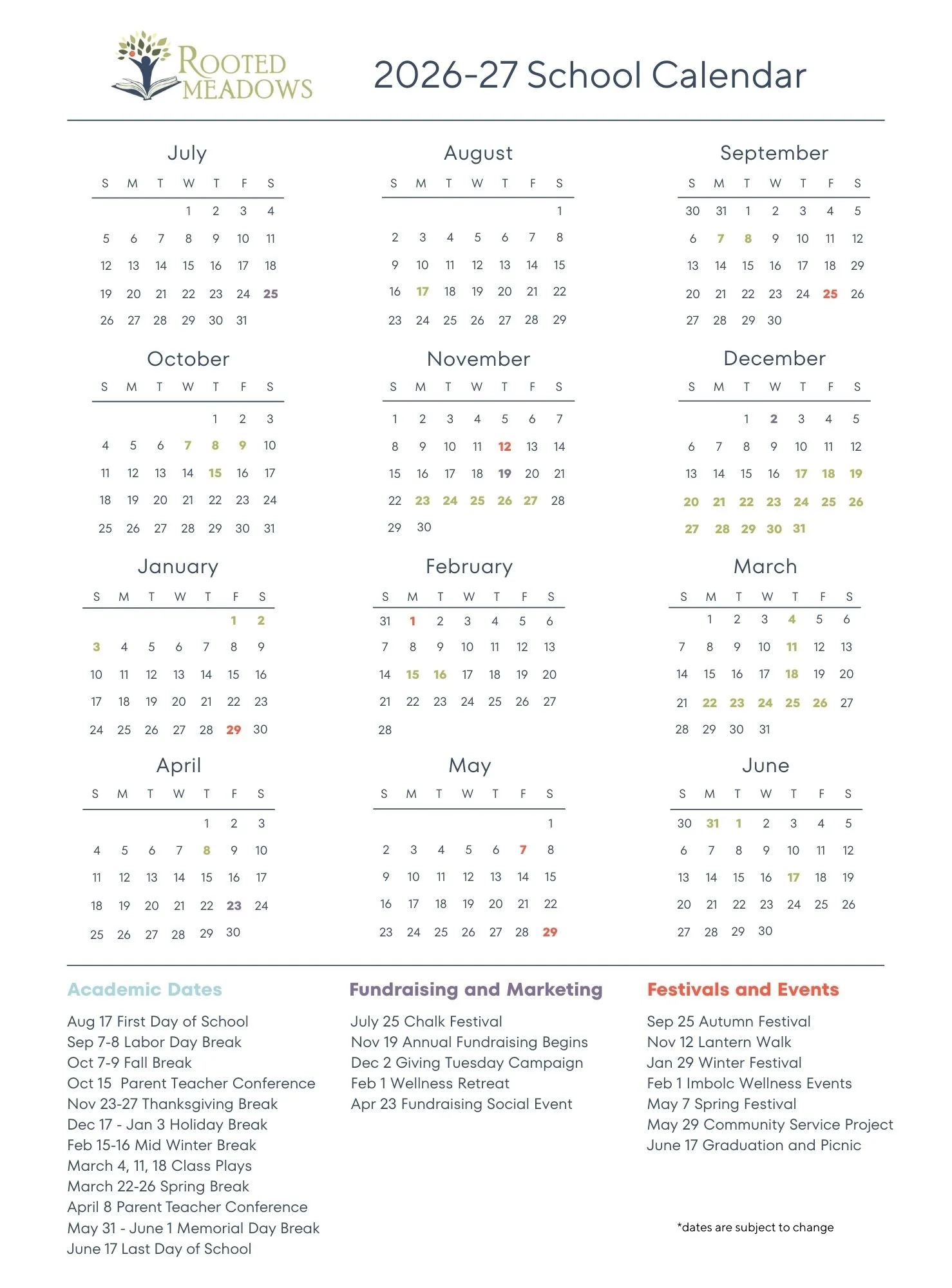 Here, you’ll find important dates for school breaks, festivals, parent evenings, early release days, and special gatherings that bring our community together.
